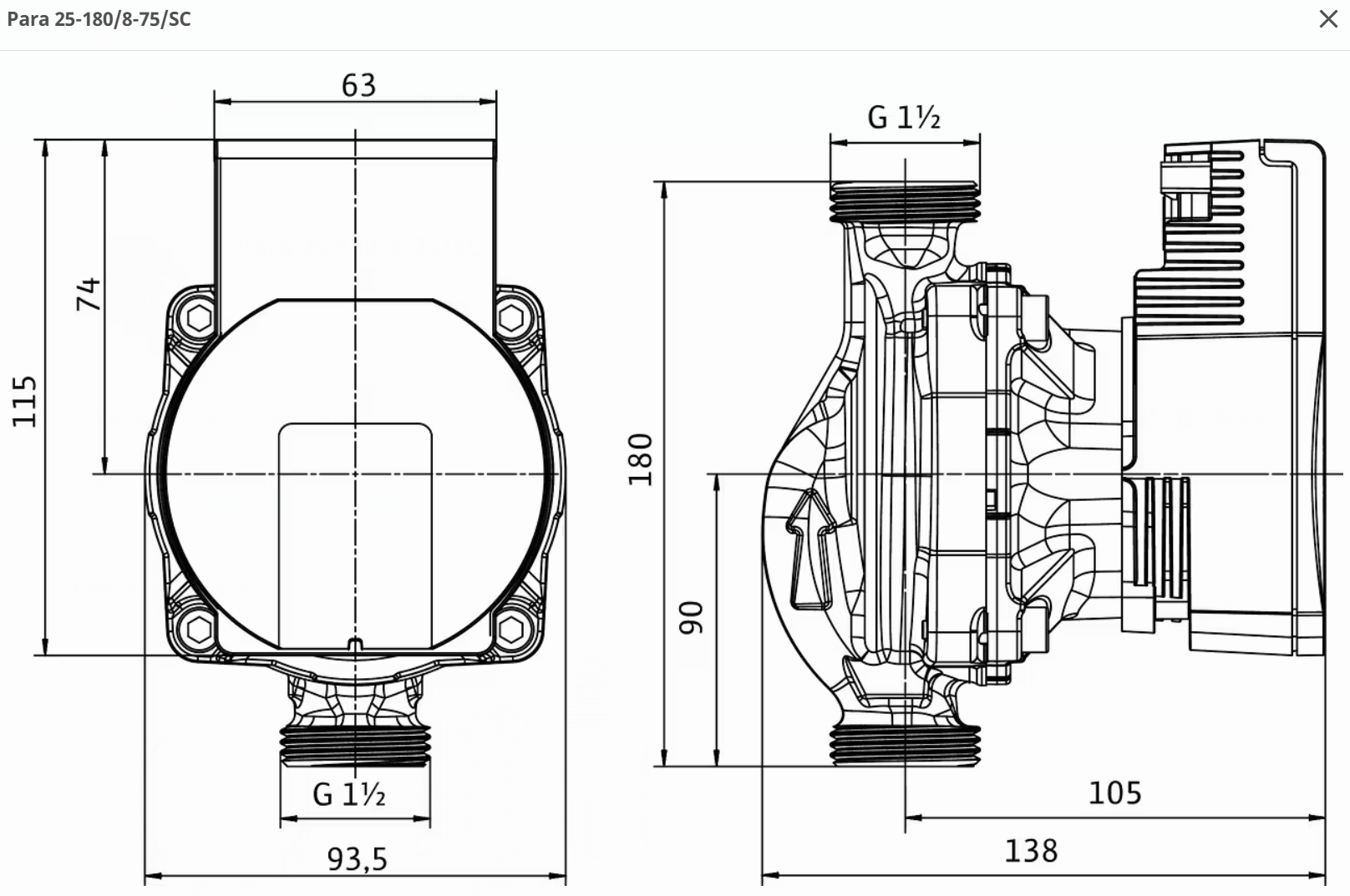 Oběhové čerpadlo WILO Para 25-180/8-75/SC, závit 6/4", vestavná délka 180mm