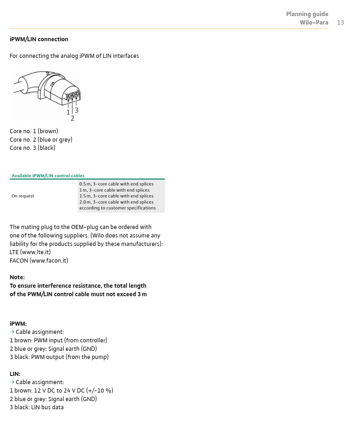 WILO kabel iPWM k oběhovému čerpadlu PARA - obousměrný signální kabel s konektorem, délka kabelu 2m