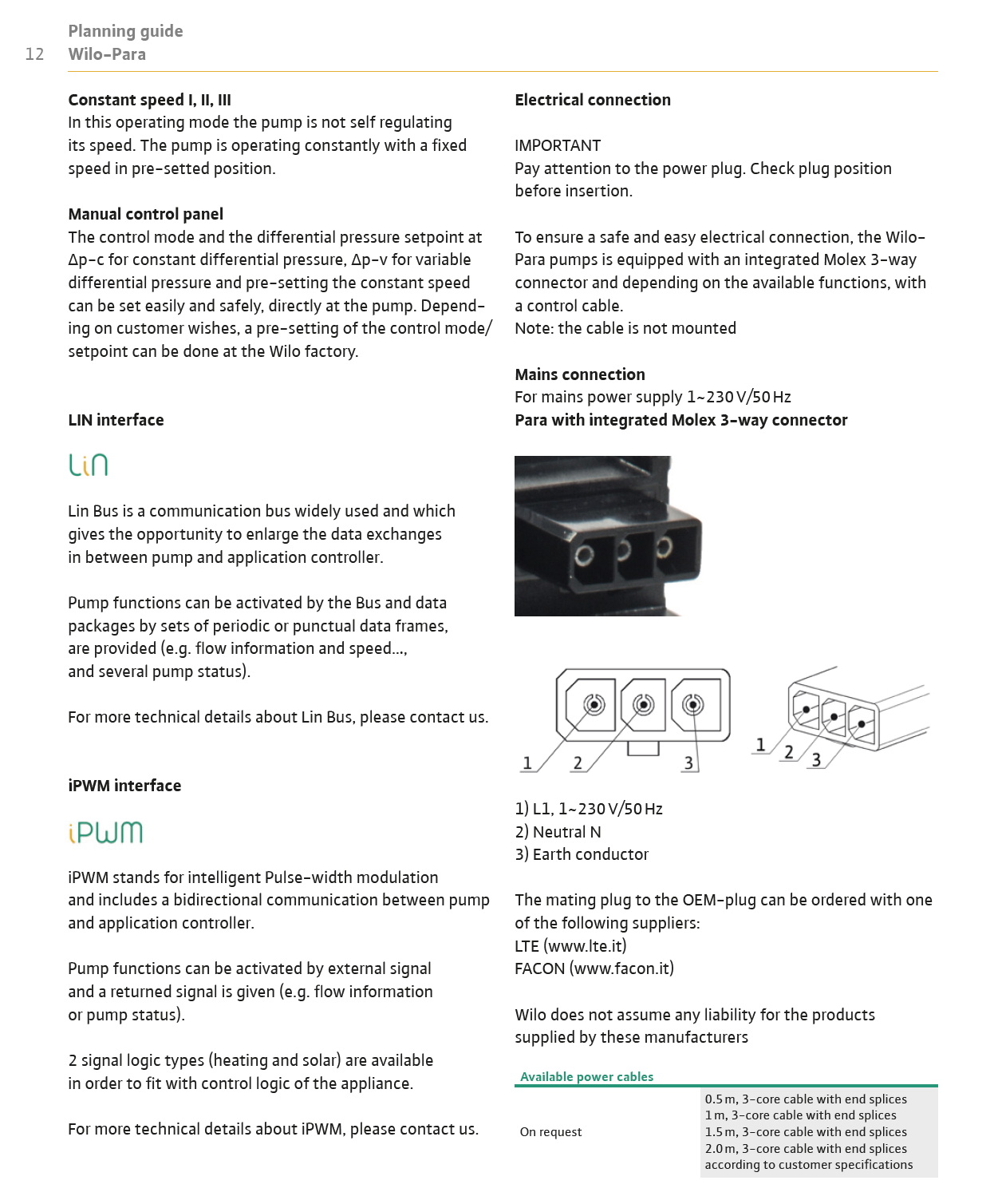 WILO kabel k oběhovému čerpadlu PARA - Molex konektor, délka kabelu 2m